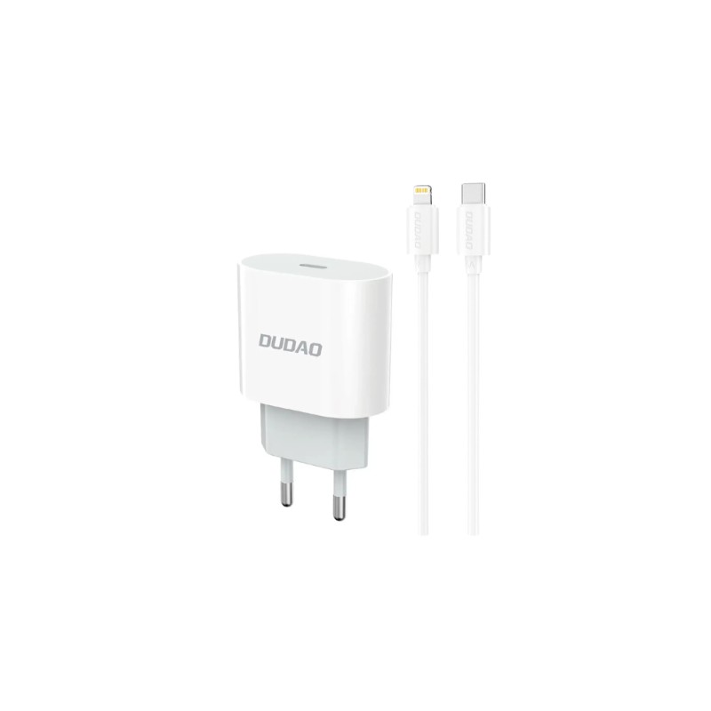 Dudao - Strømforsyningsadapter - 20 Watt - USB-C - 1m USB-C til Lightning Kabel i pakken - Europa - Hvid